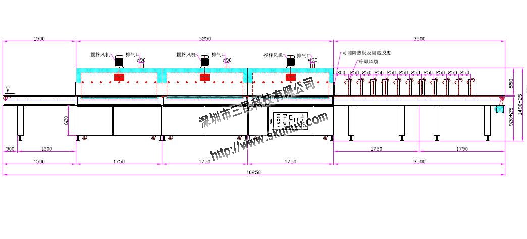 【隧道式高溫爐】適用于常規(guī)膠水油墨文字烘干SK-IR403-800