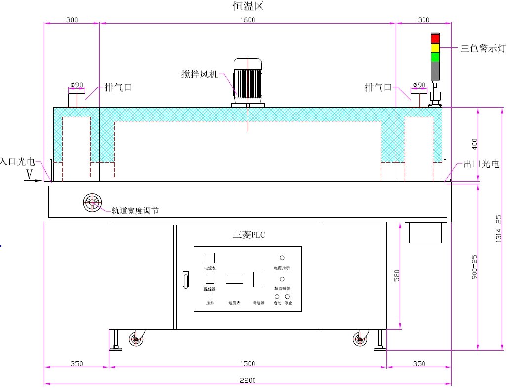 - 不銹鋼內膽三防膠烘干爐1段溫區(qū)可調式50-350mm寬幅調節(jié)