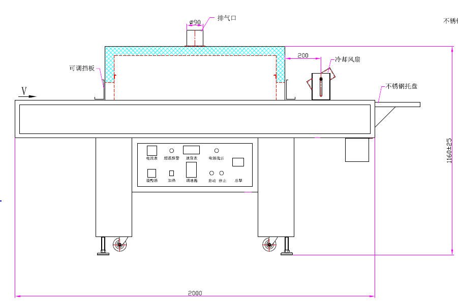 - 不銹鋼內(nèi)膽三防膠烘干爐1段溫區(qū)可調(diào)式50-350mm寬幅調(diào)節(jié)