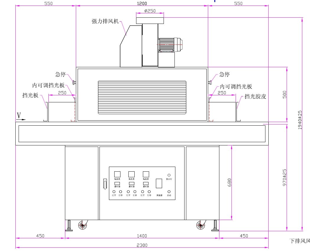本設(shè)備采用3.0kW×3汞燈配置,主波峰365nm,搭配不銹鋼網(wǎng)帶輸送(0~7m/min)及上下排風(fēng)系統(tǒng),適用于ABS等多種材質(zhì)表面絲印油墨的高效固化。配備進(jìn)口反射器、漏電開關(guān)及累時器,確保安全穩(wěn)定運行。