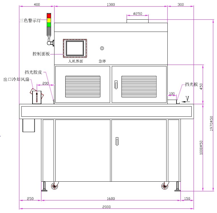 2、UV錄燈總長(zhǎng):900mm、弧長(zhǎng)800mm