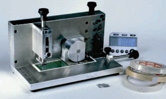 Fogra的上光油粘附力測定裝置LHT用把各項參數標準化的方法使膠帶測試更加可靠。其目的就是在保持膠帶測試的根本理念的同時把測試的順序機械化,用消除人為影響和主觀性的方法使人們能夠精確、客觀和可重復地確定粘附力的級別。作為研究項目的一部分,Fogra隨后檢查了在紙張和盒用紙板上進行UV上光的過程中對交聯和粘附力的損害(Fogra no. 4.051)。所取得的知識被用于為印刷專業人士開發一種簡單易用的測試裝置。LHT以一種簡單的原理為基礎:由一個機械裝置把一段普通的膠帶貼在測試樣張已經上光的表面上并施加一個預先確定的壓力。一個金屬標簽附著在自由端并被夾在揭下裝置中。一個旋轉圓盤模擬手動的膠帶取下操作。該裝置適用于薄承印物上所有的平面上光油