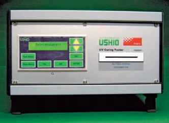 2006年11月8日在慕尼黑舉行的“ Fogra UV印刷用戶論壇” 上展出了一種新的測試裝置。與Ushio合作開發的這種UV固化測試儀是為了檢查UV油墨(但不是UV上光油!)是否已經在紙張和盒用紙板上徹底固化。在印刷完成的印張上面放置一張接觸印相紙并插入測試儀中,然后承受一個預先確定的壓力和溫度。測試結束時粘在接觸印相紙上的油墨表明固化不完全;如果接觸印相紙是干凈的,固化就是完全的。